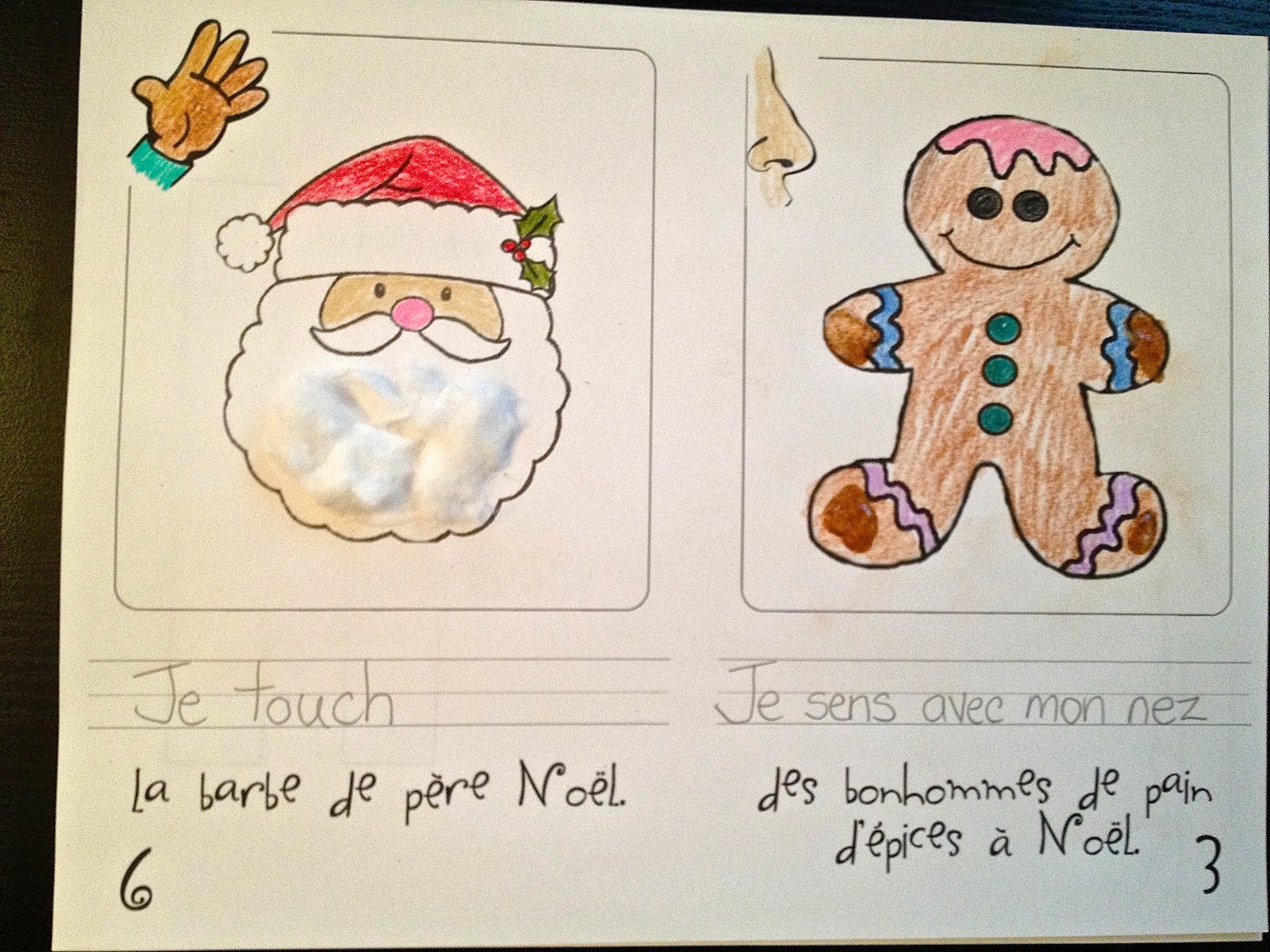 Repetitive song the young students love about Santa getting dressed (Quand le Père Noël vient me visiter). Printable song book is here.